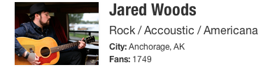 Jared Woods resides in Anchorage, Alaska with his wife and sons. He’s got a big sound, a contagious laugh and a genuine love for those who listen.